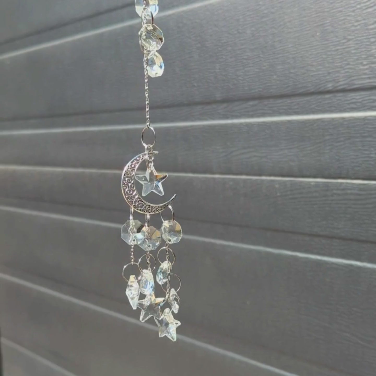 XX11 | Silver Quartz Crystal Moon & Stars Suncatcher