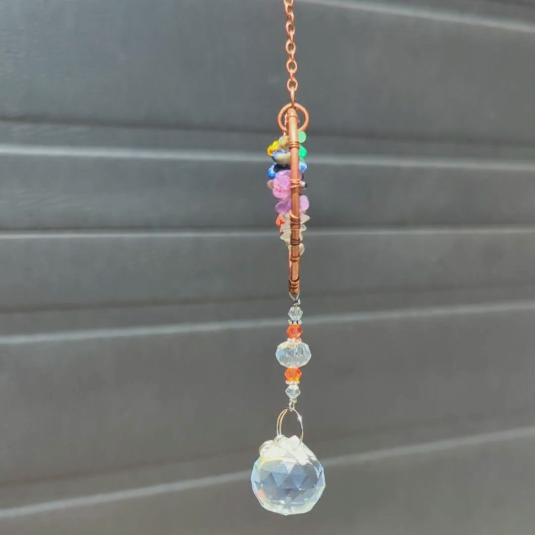 AS11 | Capteur de soleil cœur cuivre avec pendentif cristal et arbre de vie chakras